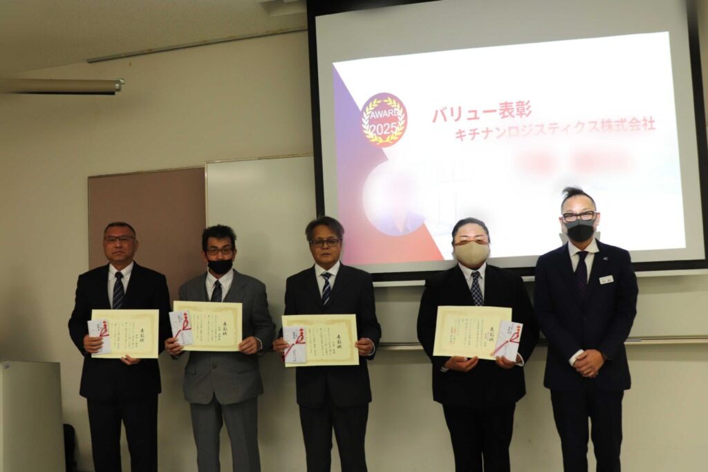 キチナングループには、私たちが掲げる「3つのバリュー」を体現し、グループの成長につながる活躍をした功績者を讃える制度があります。選抜された社員は、このキックオフの舞台で表彰されます。
