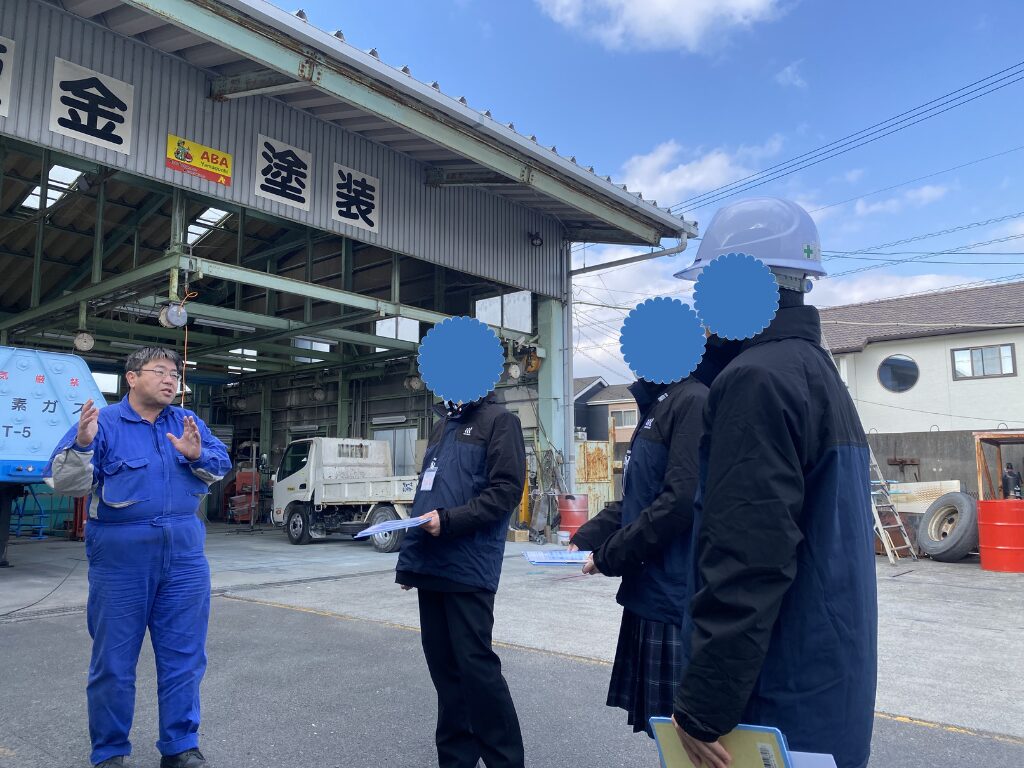 下松工業高校からは3名の1年生が参加をしてくださり、工場見学はもちろん、実際に加工作業の体験を実施。