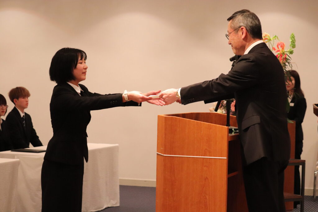 式は辞令交付から始まりました。各社の社長より交付が行われ、代表者が受け取りました。